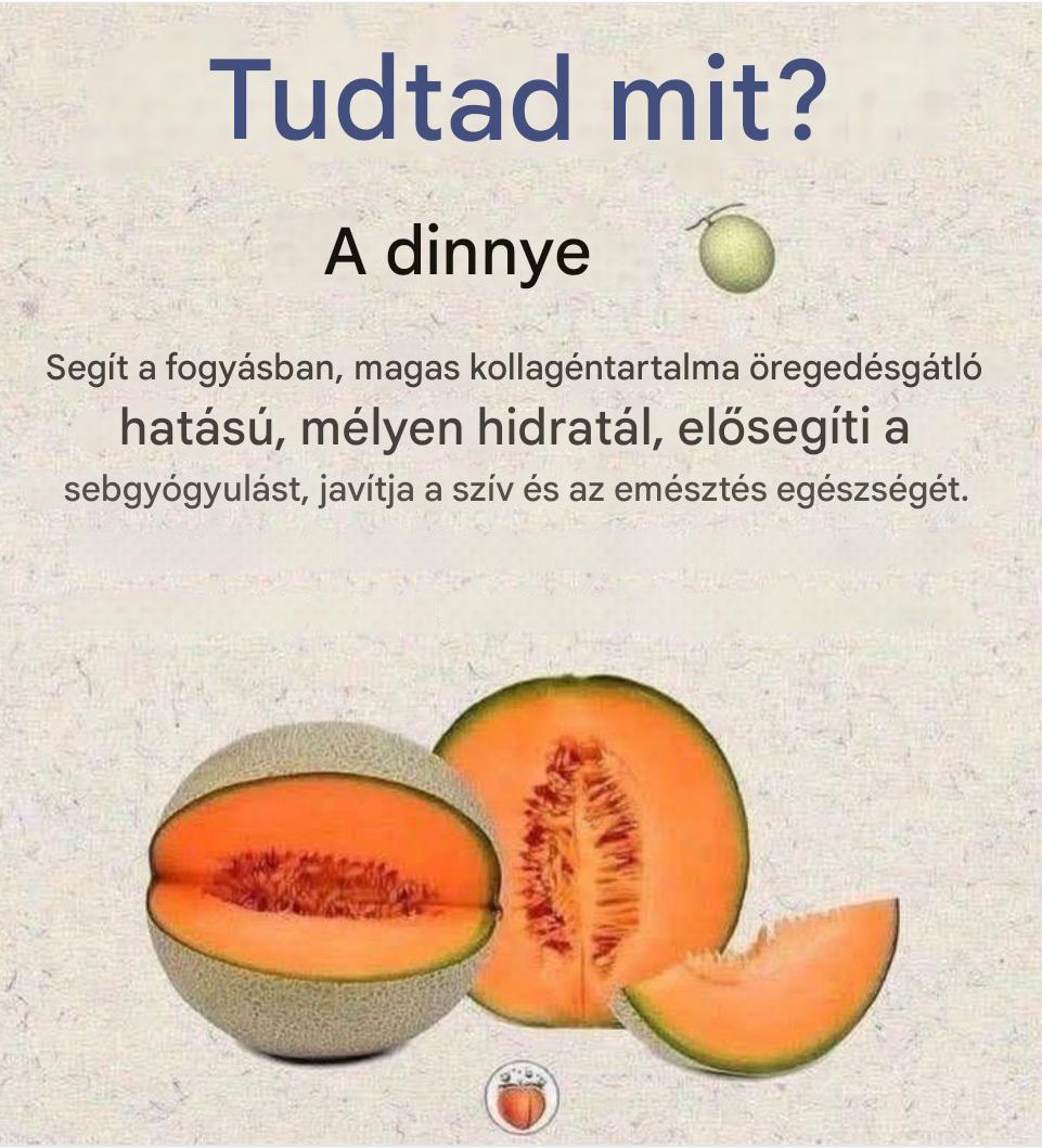A dinnye magas víztartalmú gyümölcs, amely gazdag vitaminokban (A, B, C, E) és ásványi anyagokban (kálium, magnézium).