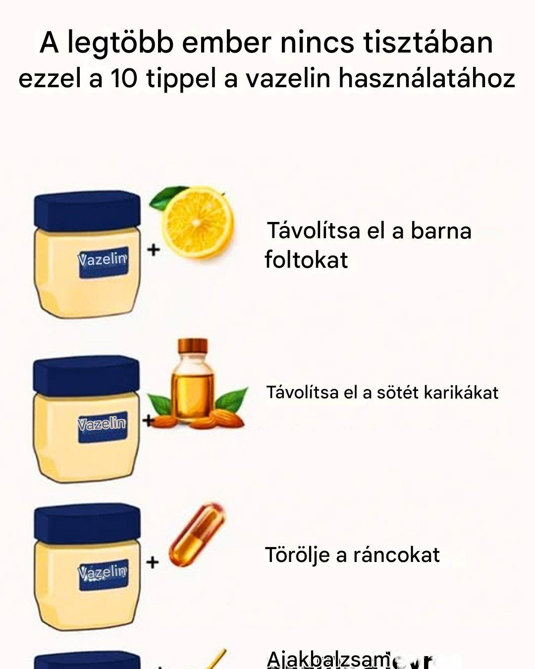 Ahogy mondani szokás, jobb megelőzni, mint gyógyítani! A vazelin, okklúzív tulajdonságainak köszönhetően, segít kisimítani a finom vonalakat azáltal, hogy megtartja a vizet a bőr felső rétegeiben. Hatásának fokozása érdekében adjon hozzá egy csepp E-vitamin olajat, amely antioxidánsokban gazdag.