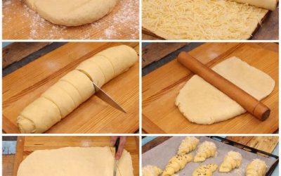 Sajtos réteges kifli (gyors, dagasztás nélkül)