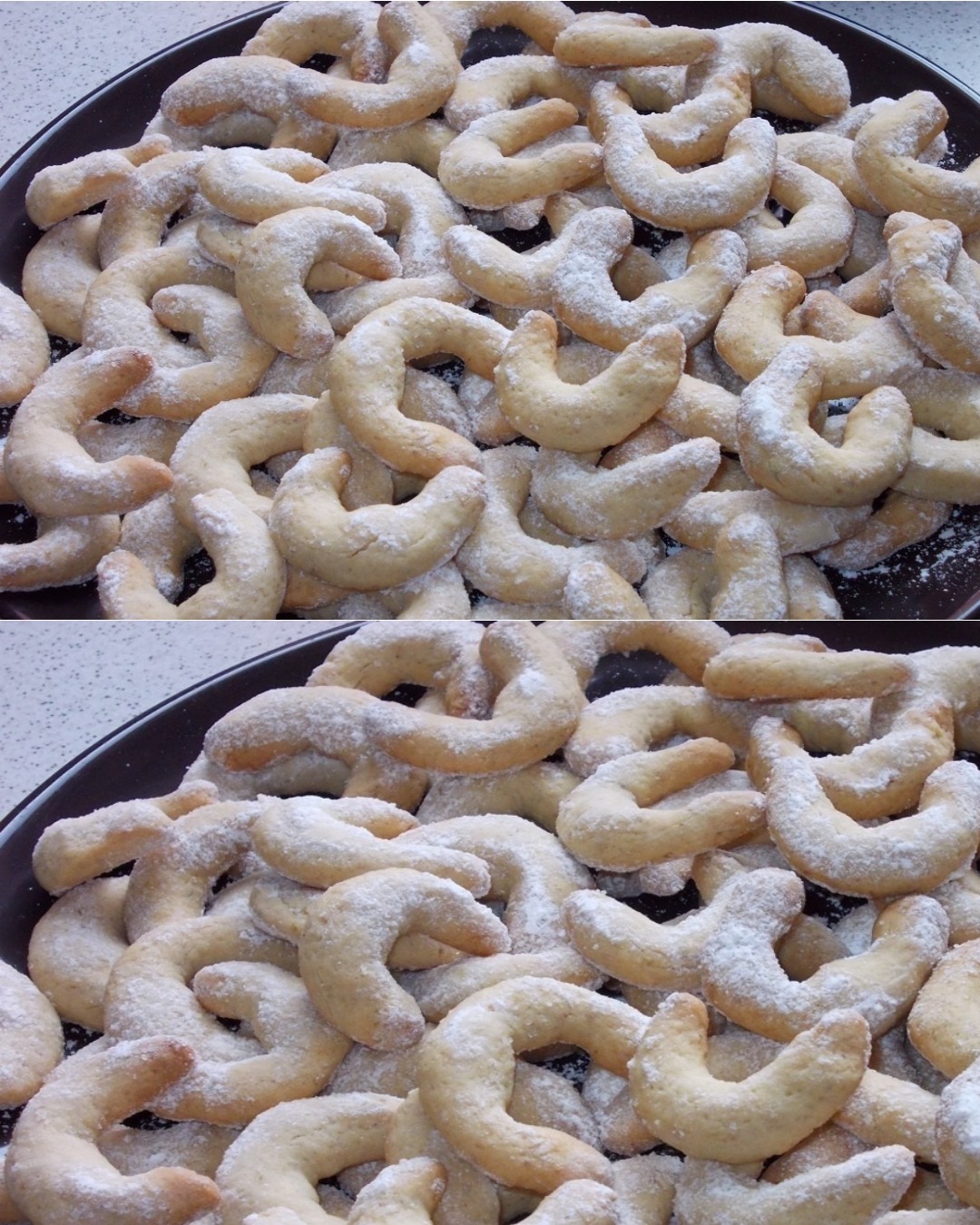 A tészta minden alapanyagát egy tálba tesszük és összegyúrjuk. A tészta lágy lesz, de ettől ne ijedjünk meg. Ahogy összeállt a tészta, fóliába csomagoljuk és 30 percre hűtőbe tesszük. Majd kivesszük a hűtőből és kisebb darabokat tépünk le a tésztából, a kezünkkel kiflikké formájuk és papírral bélelt tepsibe tesszük. 180 fokos sütőben nagyjából 15 perc alatt megsütjük, majd porcukorba forgatjuk és tálalhatjuk is. Dió helyett használhatunk darált mandulát is, mert az is nagyon finom!