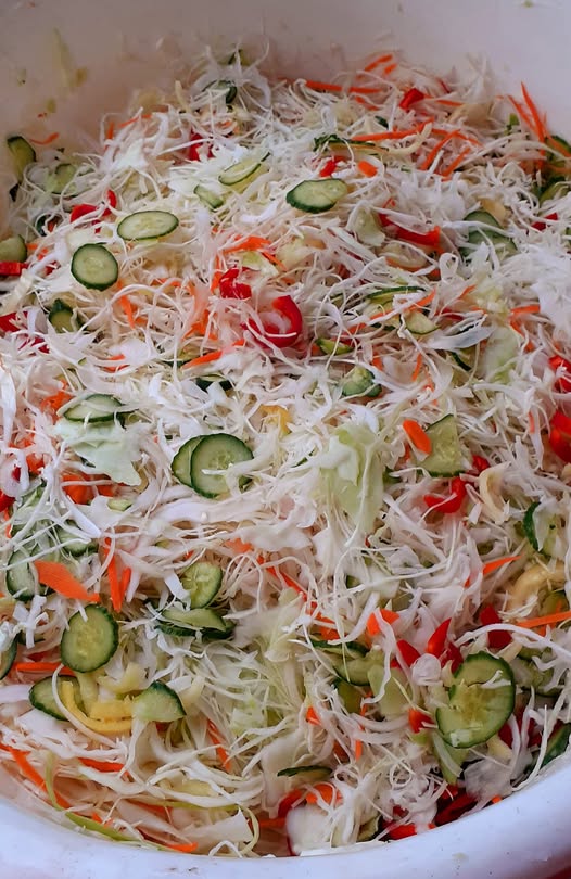 Egyszerű csalamádé recept, az a legjobb benne, hogy nem kell üvegekbe rakni. 5 literes vödrökbe, lezárva hosszú ideig eltart, már ha el nem fogy. Természetesen aki szeretné, a 24 óra leteltével, amíg időnként kevergetni kell, üvegekbe is teheti. A zöldségek megőrzik gyönyörű színűket. Tetszés szerint más zöldség is kerülhet bele.