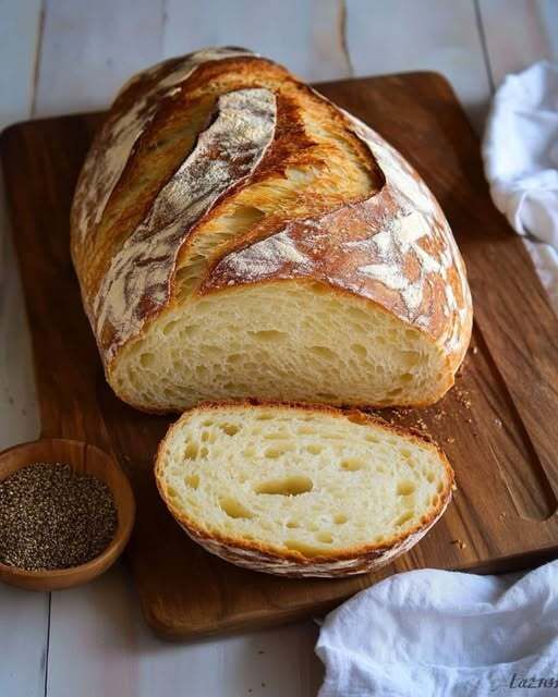 Egy frissen sült, illatos házi kenyérnél kevés jobb dolog van – különösen, ha nem is kell hozzá dagasztógép! Ez a recept egyszerű, mégis nagyszerű: a végeredmény pedig egy kívül ropogós, belül puha vekni, amit büszkén tehetsz az asztalra.