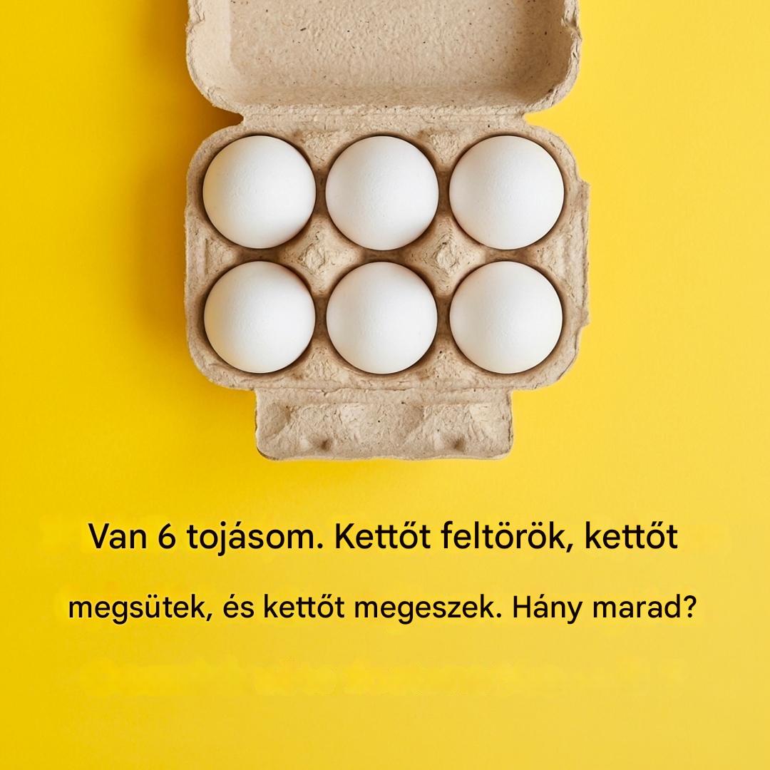 „Van 6 tojásom. Kettőt összetörök. Kettőt megsütök. Kettőt megeszek. Hány marad?”