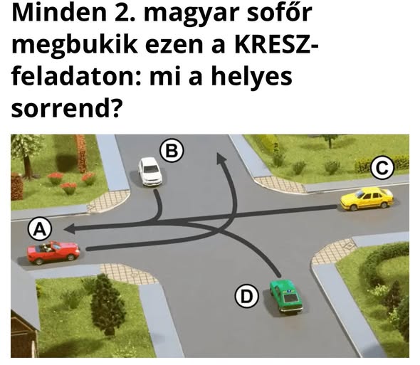 Minden 2. magyar sofőr megbukik ezen a KRESZ-feladaton: mi a helyes sorrend?