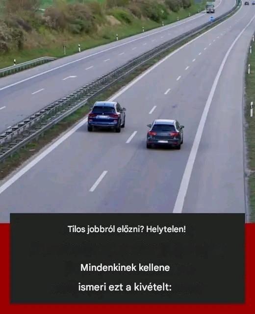👉 Dugó vagy lassú forgalom esetén megengedett a jobbról előzés.