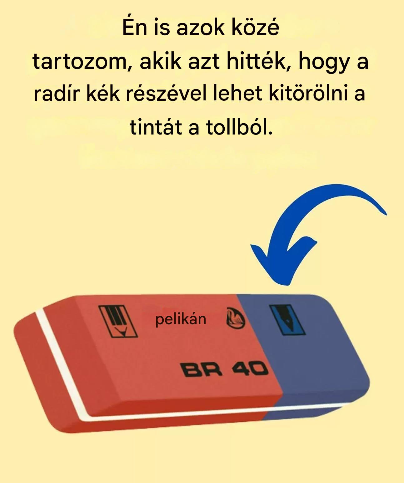 A közhiedelemmel ellentétben a radír kék része soha nem a tolltinta eltávolítására készült.