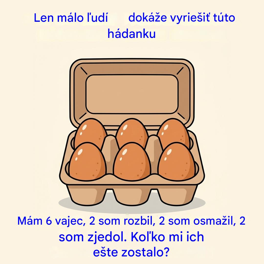 „Mám šesť vajec. Rozbil som dve. Dve som usmažil. Dve som zjedol. Koľko mi ich ešte zostalo?“
