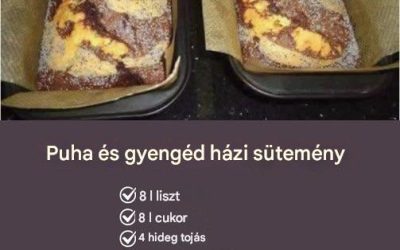Hozzávalók: 8 evőkanál liszt 8 evőkanál cukor 8 evőkanál olaj 4 hideg tojás (hűtőből) 1 teáskanál sütőpor 1 evőkanál citromlé…