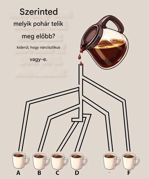 Első pillantásra a kép egy egyszerű logikai feladványnak tűnik. A kávé egy csövek hálózatán keresztül hat, A-tól F-ig jelölt csészébe folyik. A feladat egyszerűnek tűnik: melyik csésze telik meg először?